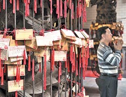 ▲東隆宮掛著滿滿的信眾祈福卡,今年將和王船一起焚燒祈福。王英豪/攝影